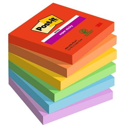 Post-It Notas Adhesivas Super Sticky 3 Colores Lugares Playful 76x76 mm, 6 Blocs