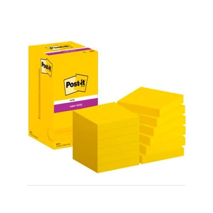 Post-It Bloc Notas Adhesivas 654 Super Sticky 76x76mm Ultra Amarillo Paquete 12 Unidades