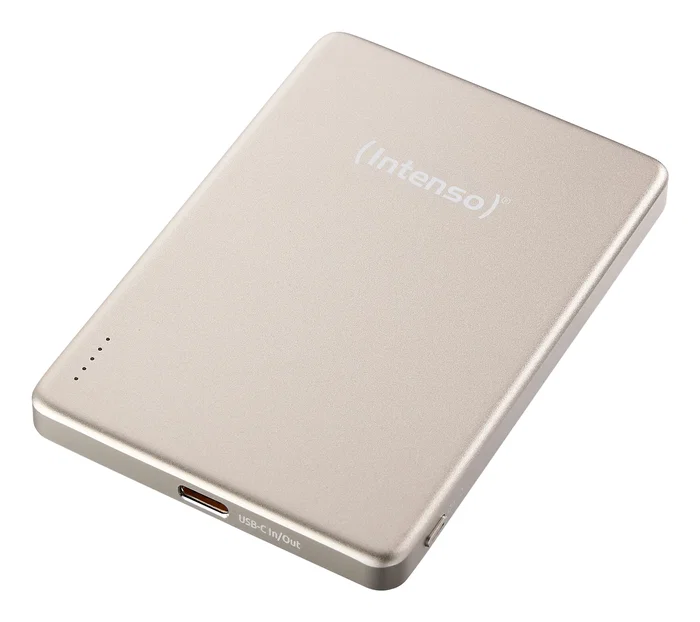 Intenso MW5000 Batería Externa Magnética 5000 mAh – Compatible con MagSafe, Carga Inalámbrica 15W, USB-C PD 20W, Delgada y Compacta – Probada en Alemania – Champán, 5000 mAh, Polímero de litio, Power Delivery, Programmable Power Supply (PPS), Cargador inalámbrico, 3,85 V, Champán