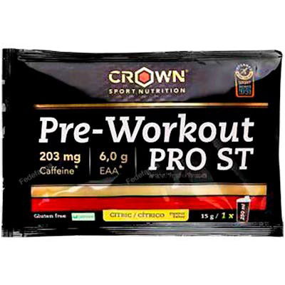 CROWN SPORT NUTRITION Pre-Workout PRO ST Concentrado en Polvo Cítrico 1 Sobre 15g, Cafeína y Aminoácidos Esenciales, Sin Azúcares