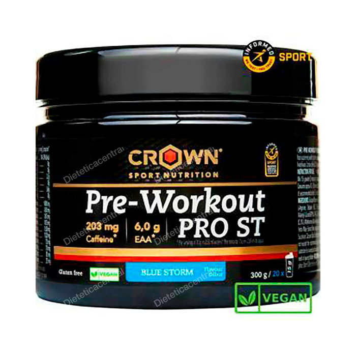 CROWN SPORT NUTRITION Pre Workout Pro St Blue Storm 300 g (20 Porciones) Complemento Pre-entreno Vegano con Cafeína y Aminoácidos