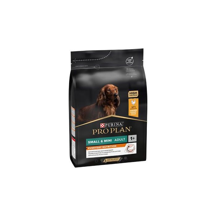 - Purina Pro Plan Small & Mini Adult con Optibalance rico en pollo, es un alimento seco completo para perros adultos.