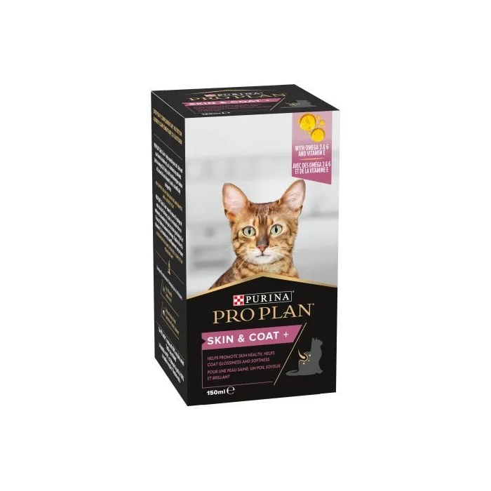 Favorece la salud de la piel y el brillo y la suavidad del pelo de tu gato con Purina Skin&Coat+. Este suplemento combina los beneficios del aceite de salmón, aceite de linaza y vitamina E.