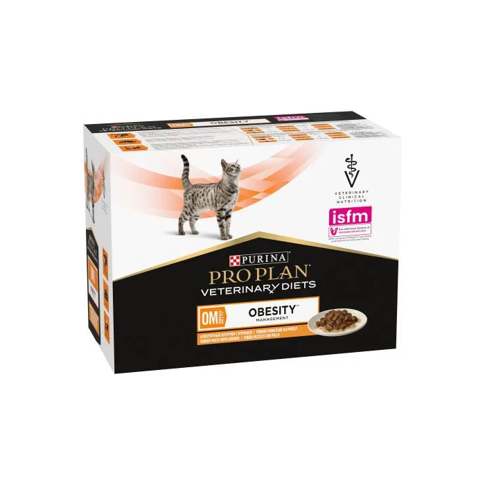Purina Pro Plan Vet Feline Om Obesity Alimento Clínico para Gatos para Pérdida de Peso y Mantenimiento de Peso Ideal Caja Pouch 10x85 gr