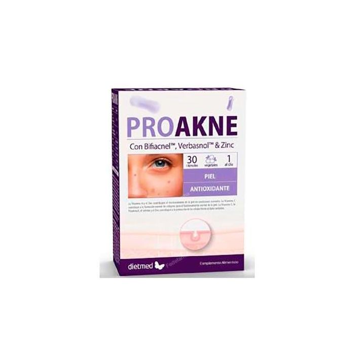 DIETMED Proakne 30 Cap - Complemento alimenticio para el acné con Vitamina A, Zinc y Vitamina C para el mantenimiento de la piel
