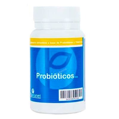 Composicion: Mezcla de Probióticos: Lactococcus lactis, Lactobacillus paracasei, Lactobacillus plantarum, Lactobacillus acidophilus, Lactobacillus salivarius, Bifidobacterium lactis (x2), Enterococcus faecium, hidroxipropilmetilcelulosa (cápsula vegetal), Frutooligosacáridos (F.O.S.), agente de carga (celulosa microcristalina), ácido L-ascórbico (vitamina C) antiaglomerante (estearato de magnesio), nicotinamida (Vitamina B3, niacina), antiaglomerante (dióxido de silicio), D-pantotenato cálcico (Vitamina B5, ácido pantoténico), clorhidrato de piridoxina (Vitamina B6), clorhidrato de tiamina (Vitamina B1), riboflavina (Vitamina B2), ácido pteroilmonoglutámico (Vitamina B9, ácido fólico), D-Biotina y cianocobalamina (Vitamina B12). Presentación: 60 cápsulas de 586 mg. Cantidad neta: 35 g. Aprox. Cantidad de nutrientes ó sustancias con un efecto nutricional ó fisiológico: 6,6x 10^8 ufc (330 mg) de la Mezcla de Probióticos, 13 mg vitamina C (16% VRN), 2,66 mg de Vitamina B3 (16,6 % VRN), 1 mg Vitamina B5 (16,6% VRN), 0,23 mg de Vitamina B6 (16,6% VRN), 0,18 mg de Vitamina B1 16,3% VRN), 0,23 mg de Vitamina B2 (16,4% VRN), 30 µg de ácido fólico (15% VRN), 8 µg de Biotina (16% VRN), 0,3 µg de Vitamina B12 (12% VRN).