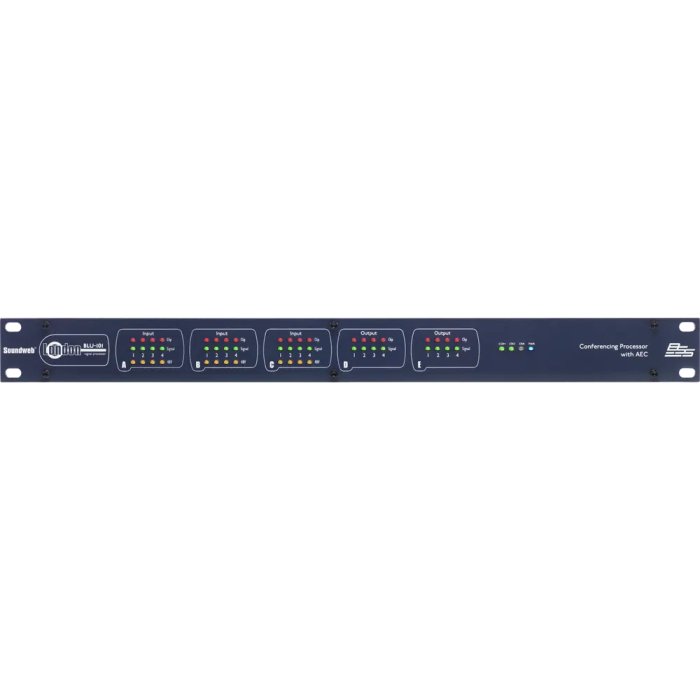 El Soundweb London BLU-101 ofrece una configuración fija de 12 entradas analógicas y 8 salidas analógicas, procesamiento de señal configurable, procesamiento AEC y un bus de audio digital de alta banda ancha y tolerancia a fallos.El BLU-101 tiene una arquitectura abierta que es completamente configurable a través de HiQnet? Audio Architect. Una rica paleta de objetos de procesamiento y lógica y un método de configuración de ?arrastrar y soltar? proporcionan un entorno de diseño simple y familiar.El BLU-101 contiene procesamiento AEC dedicado para hasta 12 algoritmos AEC independientes. El algoritmo AEC puede aplicarse a señales provenientes de las entradas analógicas locales o del bus de audio digital. 12 referencias AEC individuales (una por algoritmo) permiten al usuario proporcionar una solución para múltiples espacios de conferencias utilizando un solo dispositivo.También se proporcionan Control Automático de Ganancia (AGC) y Cancelación de Ruido (NC) por cada algoritmo AEC. AGC asegura que los niveles del micrófono se mantengan en un nivel óptimo, y NC elimina el ruido constante (como de un ventilador de proyector o un dispositivo de aire acondicionado) del camino de la señal.Este procesador cuenta con un bus de audio digital de baja latencia y tolerante a fallos de 48 canales que utiliza cableado estándar de Categoría 5e, ofreciendo una distancia de 100m entre dispositivos compatibles. Los convertidores de medios de fibra pueden usarse para aumentar la distancia entre dispositivos a más de 40km.El BLU-101 es compatible con toda la familia Soundweb London y su bus de audio digital de 48 canales representa los canales 1-48 del bus de audio digital de 256 canales más grande cuando se integra con los dispositivos BLU-800, BLU-320, BLU-160, BLU-120, BLU-BIB y BLU-BOB.Las Entradas Analógicas proporcionan ganancia configurable por software en pasos de 6dB hasta +48dB por canal y alimentación Phantom seleccionable por software por canal.La información de alimentación Phantom, Presencia de Señal y Recorte por canal es fácilmente accesible, sin necesidad de una PC, desde una indicación LED clara en el panel frontal. Una función de localización bidireccional permite identificar dispositivos tanto desde como dentro de HiQnet Audio Architect.12 Entradas de Control y 6 Salidas de Lógica permiten que el BLU-101 se integre con dispositivos compatibles con GPIO. El Kit de Interfaz Soundweb London, documentación completa que detalla cómo los sistemas Soundweb London pueden integrarse con sistemas de control de terceros, se incluye dentro de la instalación de HiQnet Audio Architect.El BLU-101 y los otros miembros de la familia Soundweb London proporcionan los bloques de construcción de la solución del sistema perfectamente adaptada.Características? 12 entradas analógicas (con alimentación Phantom de 48 V por canal)? 8 salidas analógicas? Procesamiento de señal configurable? 12 canales de procesamiento AEC con control automático de ganancia y cancelación de ruido? Rica paleta de objetos lógicos y de procesamiento? Bus de audio digital de 48 canales, baja latencia y tolerante a fallas? Indicación LED clara en el panel frontal? Funcionalidad de localización bidireccional? 12 entradas de control y 6 salidas lógicas para integración GPIO? Kit de interfaz Soundweb London para integración de sistemas de control de terceros (documentación)? Dispositivo HiQnet? Configuración, Control y Monitoreo desde HiQnet Audio Architect