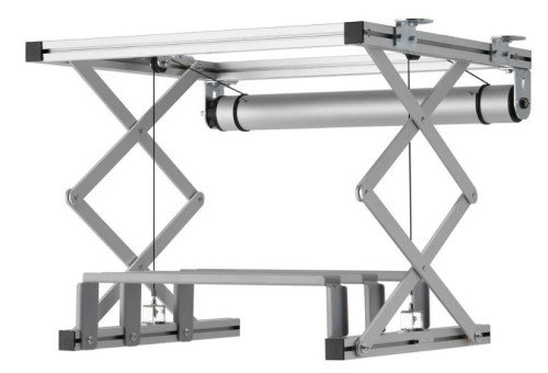 Este elevador se ha desarrollado para su instalación dentro de un falso techo donde haya muy poco espacio disponible. Dentro del falso techo solo se necesita una altura mínima de 13 cm para instalar el elevador y el proyector. El motor permite una bajada de 35 cm.