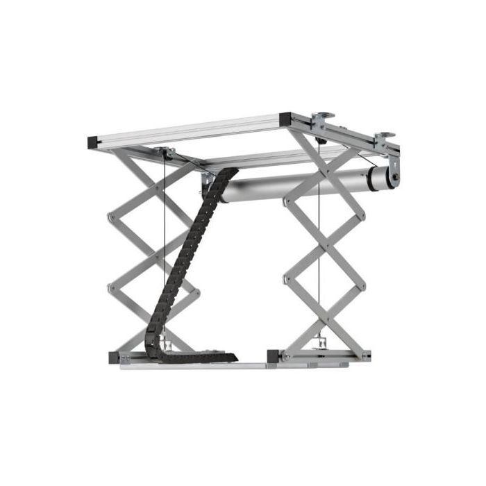 Este elevador se ha desarrollado para su instalación dentro de un falso techo donde haya muy poco espacio disponible. Dentro del falso techo solo se necesita una altura mínima de 13 cm para instalar el elevador y el proyector. El motor permite una bajada de 35 cm.