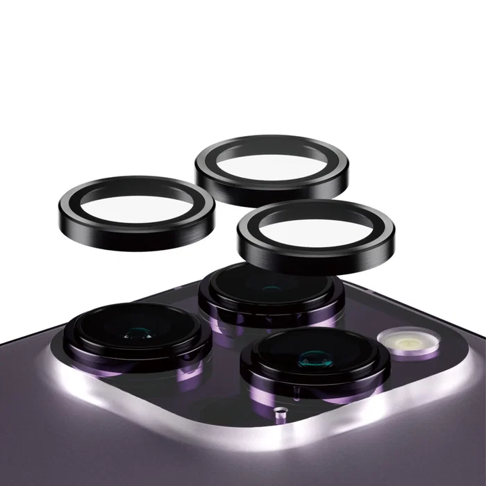 PanzerGlass Hoops Protector de Cámara de Vidrio Templado Negro para iPhone 14 Pro y 14 Pro Max - Aplicación en Seco Anti-huellas
