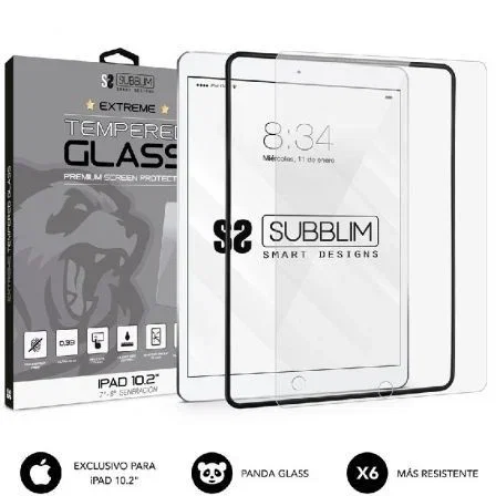 Vidrio templado Panda Glass de alta calidad formado por aluminosilicato alcalino x6 veces más resistente que el vidrio convencional. Alta transparencia, sensibilidad, un toque delicado y dureza extrema que protege la pantalla de la Tablet de rasguños y golpes.