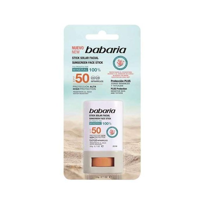 Babaria Protector Solar Facial Stick SPF50 20gr Alta Protección Solar UVB UVA Resistencia Agua Aloe Karité
