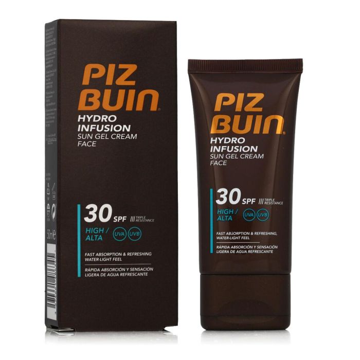 Descubre la innovadora crema solar facial HYDRO INFUSION sun gel cream face SPF30 de Piz Buin. Diseñada para brindar una sensación refrescante instantánea, esta crema protege e hidrata la piel, dejándola luminosa y saludable. Su fórmula con triple resistencia es perfecta para actividades al aire libre.
