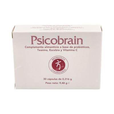 Indicaciones: Suplemento con probióticos y vitamina C que contribuye a la función psicológica normal y al normal funcionamiento del sistema inmune. Contiene además escolzia, indicada para favorecer la relajación. Psicobrain de Bromatech es un producto que contiene cepas bacterianas con propiedades psicobióticas, es decir, con la capacidad de ayudar al eje intestino cerebro. Además de estas cepas bacterianas, Psicobrain también incluye otros ingredientes activos que pueden ser beneficiosos para dar apoyo a la función cognitiva y al bienestar emocional. Entre los componentes más destacados de Psicobrain se encuentran la Amapola de California, la L-teanina y la Vitamina C. La Amapola de California es conocida por sus efectos calmantes y relajantes, que pueden ayudar en situaciones del estrés. La L-teanina, por su parte, es un aminoácido que se encuentra naturalmente en el té verde y que también puede tener efectos relajantes, reduciendo la sensación de fatiga y apoyando a la calidad del sueño. Finalmente, la Vitamina C es un antioxidante que contribuye a la protección celular frente al daño oxidativo. Gracias a la combinación de estos ingredientes activos, Psicobrain puede contribuir a la función psicológica normal y al normal funcionamiento del sistema nervioso. En resumen, Psicobrain es un producto que puede ayudar al bienestar psicológico y emocional, gracias a su fórmula especial con ingredientes activos de origen natural y sus cepas bacterianas psicobióticas.