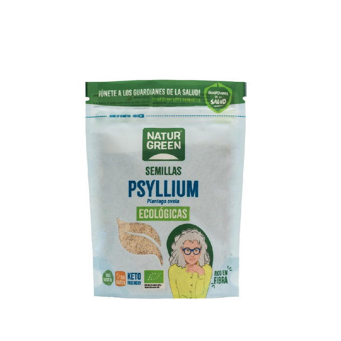 Cáscara de semilla de Psyllium ecológico molida. La cáscara de psyllium se obtiene de la semilla de una planta llamada Plantago ovata, cultivada principalmente en Asia. En España a esta planta se le llama Ispágula y a sus semillas también se las conoce por zaragatona.
