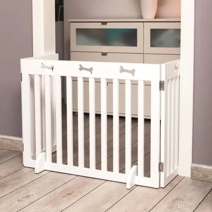 Barrera de seguridad - En MDF, barnizado - 3 piezas - Bloquear el acceso a ciertas habitaciones, escaleras, etc. - Ajustable - Dimensiones: 82-124x61 cm - Color: blanco - Para perros pequeños y medianos.