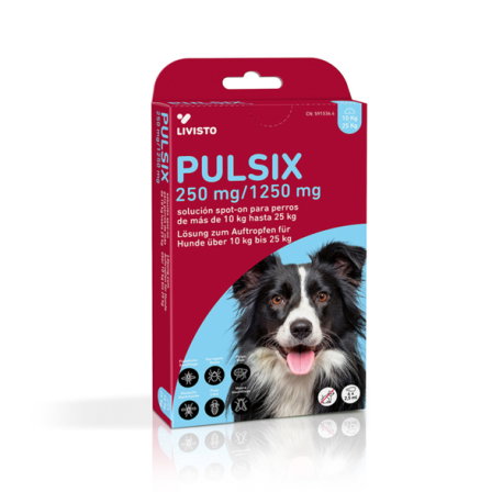Pulsix Spot-On para Perros de 10 a 25 kg - Antiparasitario en Pipeta (4 unidades de 2.5 mL, 250 mg-1250 mg)