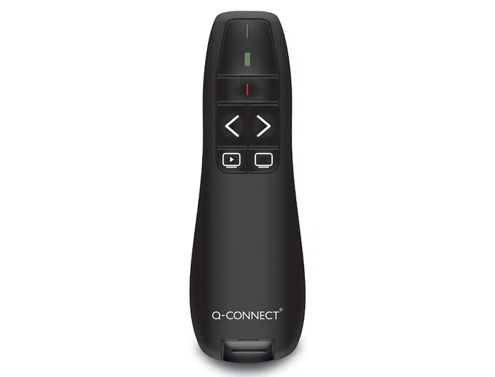 Q-connect Puntero láser inalámbrico para presentaciones con 5 botones, alcance de 20 metros y receptor USB, ideal para controlar diapositivas y funciones avanzadas