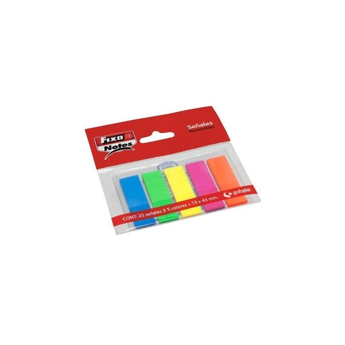 Fixo Marcadores Adhesivos Banderitas PET 13x43 mm Pack 5 Bloc X 25H Colores Neón Surtidos