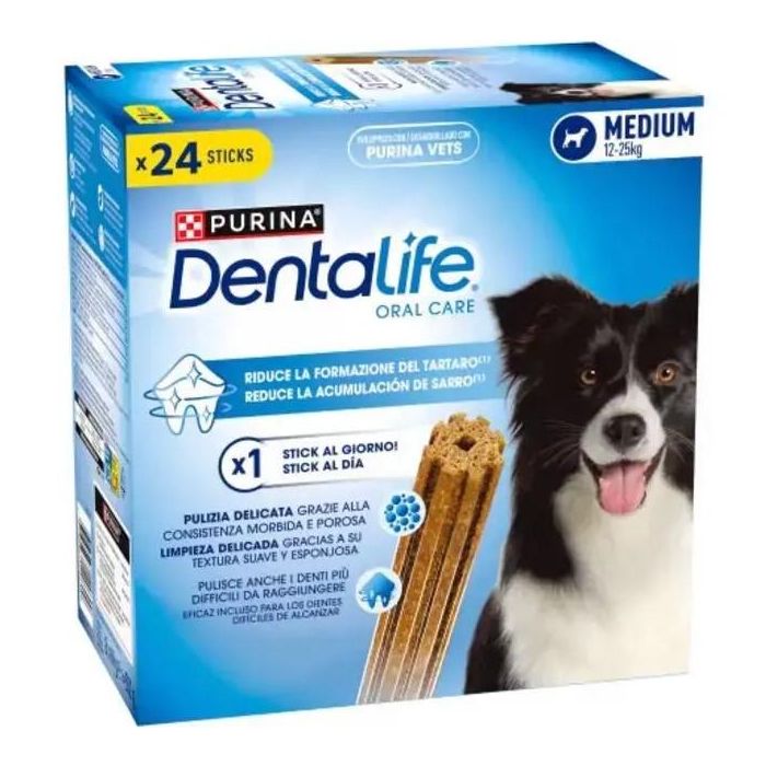 PURINA DENTALIFE Medium Multipack 24 sticks para perros tiene un delicioso sabor a pollo, y se recomienda para la limpieza dental.