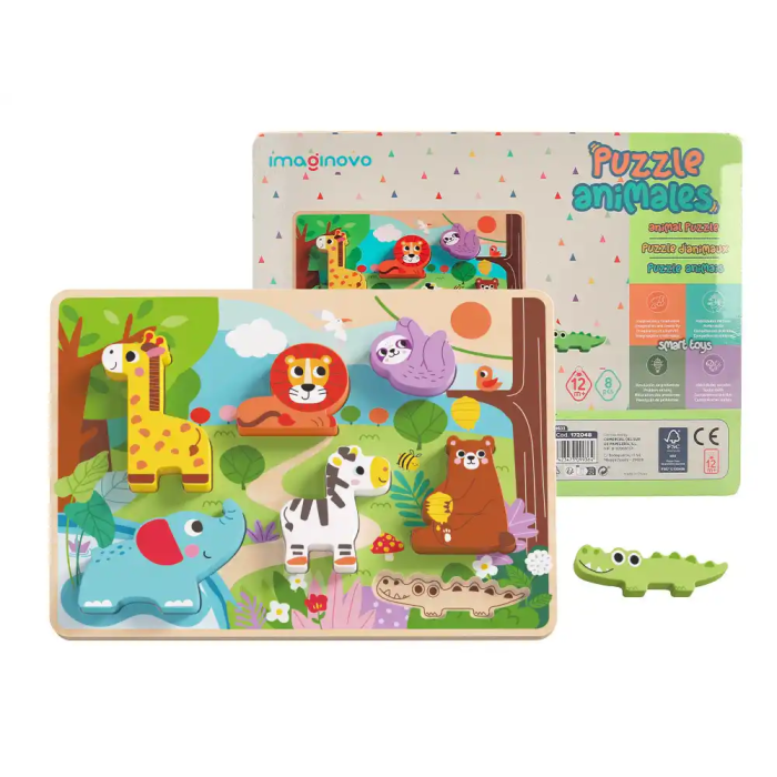 Imaginovo Puzle Infantil Madera 3D Animales +12 Meses 8 Piezas 29,5x22x1,7cm