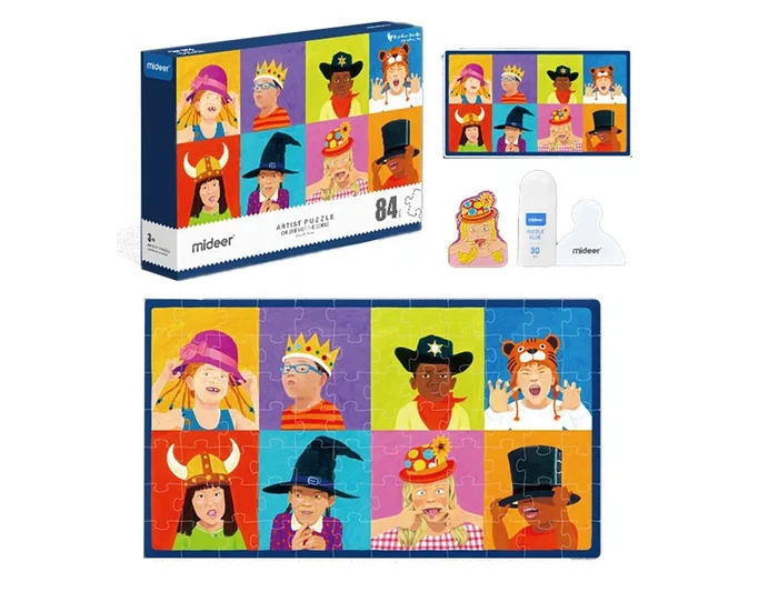 Este puzzle de 84 piezas, recomendado para niños de 3 años en adelante, tiene colores intensos y brillantes. Ideal para mejorar la paciencia. Sus ilustraciones divertidas e informativas ofrecen una forma atractiva de despertar la imaginación y promover la apreciación estética. La caja incluye una guía con la ilustración completa del puzzle, un pin metálico de uno de los personajes y una botella de pegamento de 30 ml.