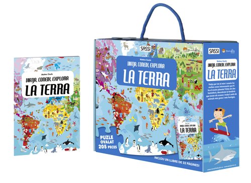 Un puzle ovalado de 205 piezas y un libro de 32 páginas para descubrir, viajar, conocer y explorar la tierra. Un juego para aprender y conocer las cosas más interesantes de nuestro planeta: hemisferios, océanos, animales y edificios.