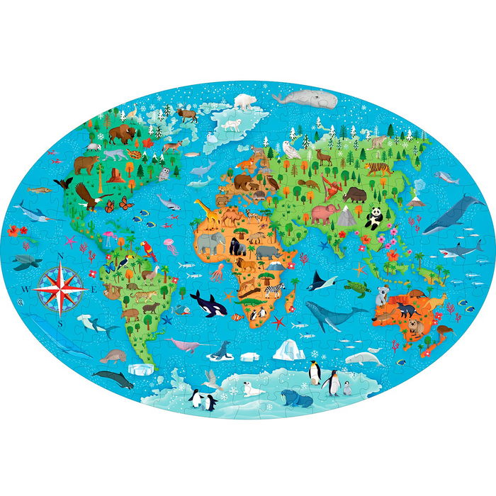 ¡El mundo está cambiando, y con él las criaturas que lo habitan! Monta el puzzle y descubre los animales que viven en los distintos continentes, y luego lee el libro para aprender más sobre las especies que están en peligro de extinción.