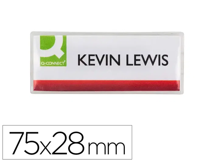 Identificadores Q-Connect con clip magnético. Placas identificativas de PVC flexible que se adaptan a todas las acasiones. Con fundas transparentes para proteger las tarjetas identificativas y mostrarlas con claridad, y clip magnético en la parte posterior para sujetarlas a la ropa sin dañar el tejido. Tamaño: 75X28 mm.