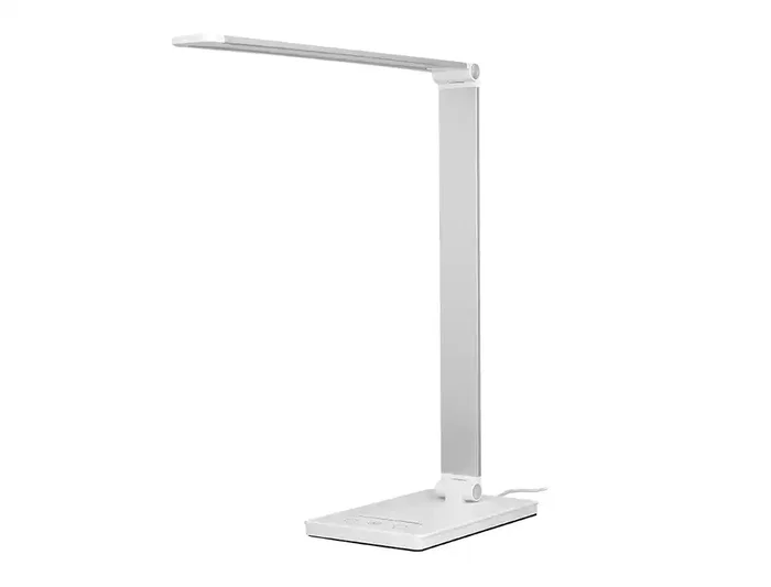 Q-Connect Lámpara de Escritorio Vega LED 10W 400 lm, Táctil, 5 Niveles de Brillo, Color Ajustable (3000K-6000K), Brazo Articulado Plegable, Carga USB-C, Color Blanco