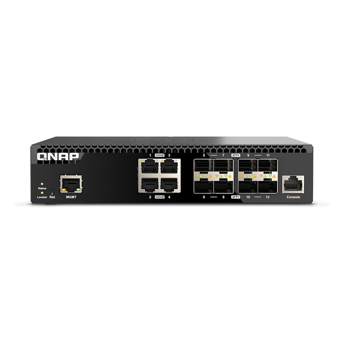 QNAP QSW-M3212R-8S4T, Gestionado, 10G Ethernet (100/1000/10000), Montaje en rack, 1U