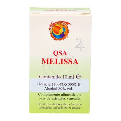 Composicion: Alcohol, aceite esencial de melisa (Melissa officinalis L.) hojas, agua. Por 9 gotas: Melisa, aceite esencial 11,41 mg.