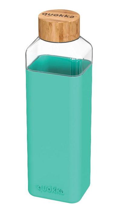 Botella de cristal Quokka de 700 ml con funda de silicona en color storm teal. Diseño funcional y moderno, ideal para llevar tus bebidas favoritas de forma segura.