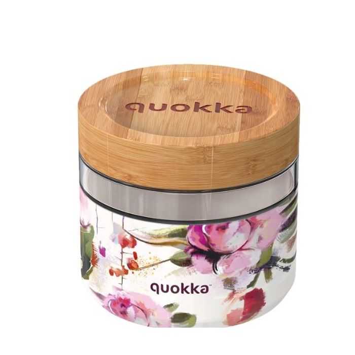 QUOKKA Recipiente de Comida de Cristal 820 ml con Funda Deli Dark Flowers, Tarro Hermético