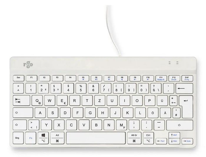 R-Go Tools Teclado Ergonómico Compact Break, QWERTZ (DE), con Software de Pausas, Compacto, con Cable, Blanco