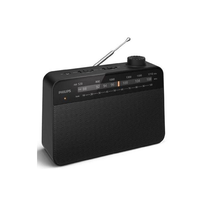 La sintonización analógica te ayuda a encontrar tus emisoras favoritas en esta radio FM/AM portátil. Basta con girar la rueda de sintonización lateral de la radio; la ventana grande y clara muestra la frecuencia sintonizada, y un indicador LED se enciende cuando la señal es intensa.