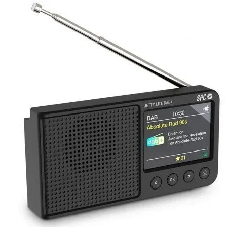 SPC Radio Portátil Jetty Lite DAB+ Negra 4591N | Radio Digital FM Bluetooth Pantalla TFT 2.4" Batería 7h | Ideal para Viajes y Uso Diario