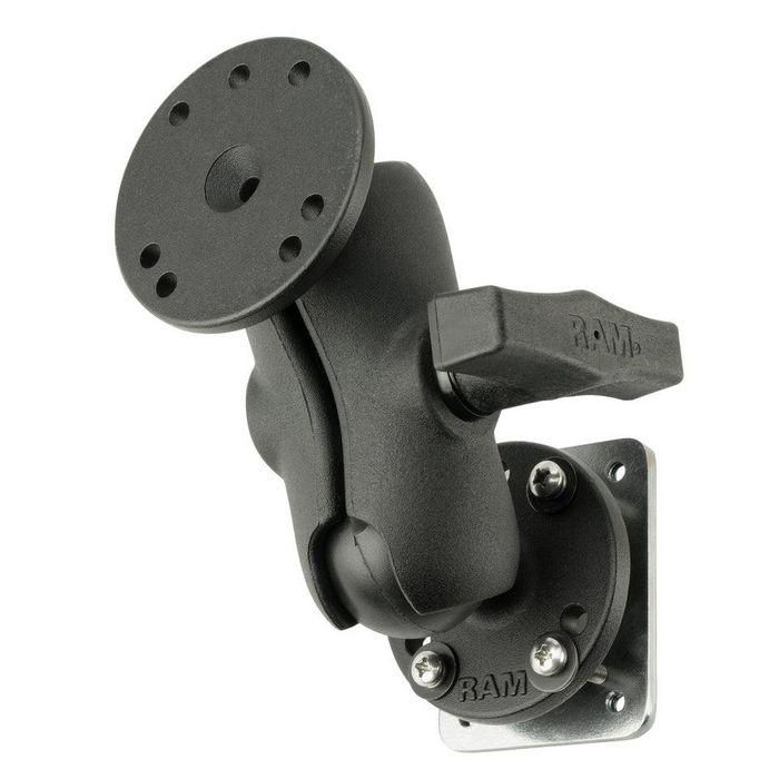 - Drill-down double ball mount with 2.10" x 2.60" steel backing plate that connects to RAM® components containing the universal AMPS hole pattern