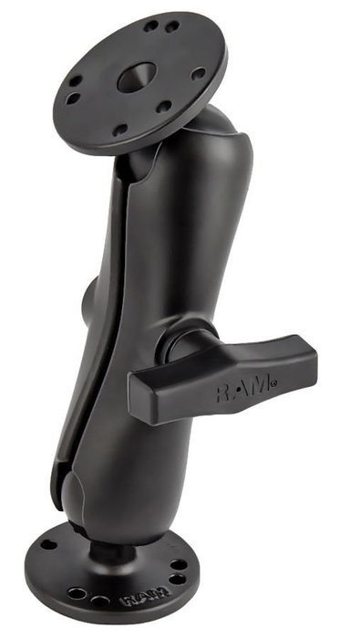 The RAM-101U consists of a double socket arm and two 2.5" diameter round bases that contain the universal AMPS hole pattern. The mount is designed with a 1.5" diameter patented rubber ball and socket system that has adjustment points at both ends of the double socket arm; this allowing for almost infinite adjustment and perfect viewing angles. The hole pattern found on the round base adapter will connect to many RAM cradles, including all iPad cradles. The included RAM’s patented design dampens shock and vibration, helping to extend the life of your device.