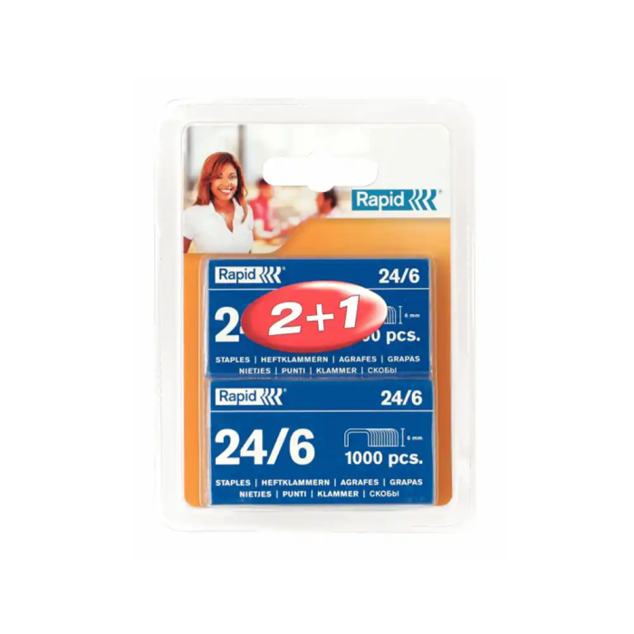Rapid Grapas 24/6 mm Galvanizada Blister 3 Cajas de 1000 Unidades 135x0x38 mm