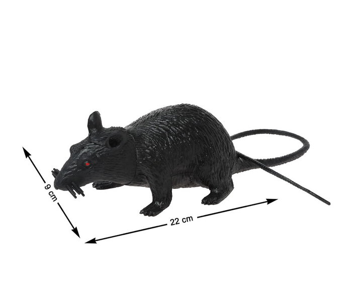 Aporta un efecto perturbador a tu decoración de halloween con esta rata negra de grandes dimensiones. con sus ojos rojos brillantes, es perfecta para ambientar casas encantadas, fiestas de miedo o acompañar disfraces de brujo, hechicero o plagas apocalípticas. crea escenarios de auténtico pavor.