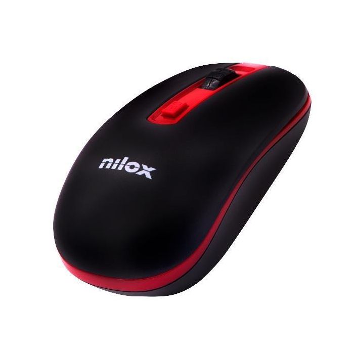 Nilox Ratón Inalámbrico 1600DPI Negro-Rojo Óptico 4 Botones 2.4GHz Windows/Linux/Mac