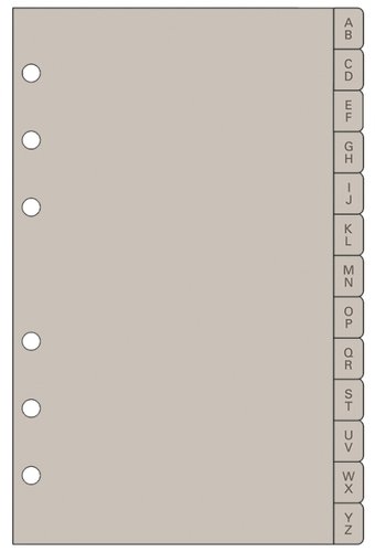 Índice alfabético de PVC para las agendas de anillas Finocam Open (distancia entre taladros 19-19-38-19-19).