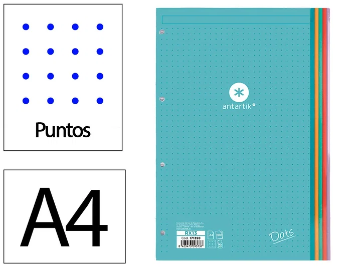 Antartik Recambio A4 100 Hojas 90gr Puntos 4 Taladros Bandas de 5 Colores