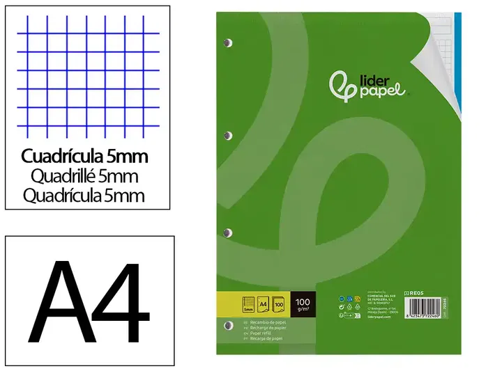 Din A4. 4 taladros. 5 bandas de color. Papel de 100 g/m² extrafuerte. La tinta no traspasa.