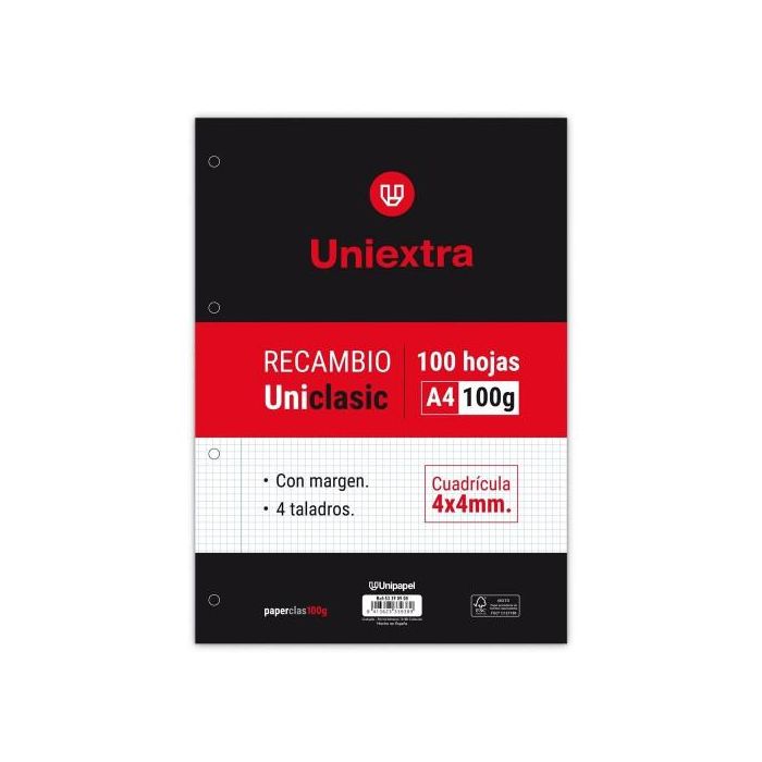 Papyrus Recambio Uni-Extra A4 53390900 Uniclasic 100 Hojas 100g 4x4 C/M