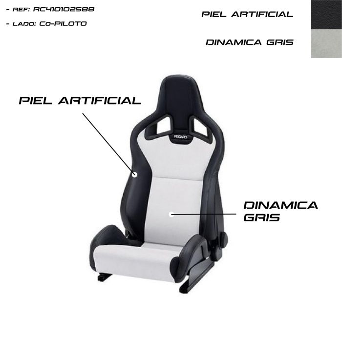Recaro RC410102588 Asiento Deportivo Sportster CS Calefacción Piel Artificial Negro-Dinamica Gris Copiloto