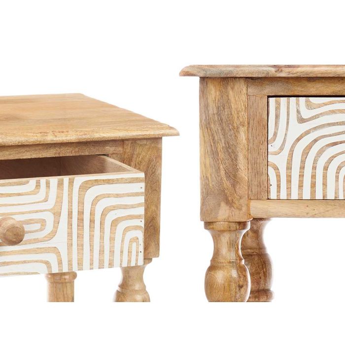 MESA RECIBIDOR 2 CAJONES CURVAS NATURAL BLANCO