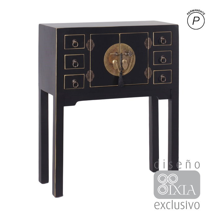 Consola 2 Puertas y 6 Cajones Negro 63 X 26 X 80 cm Material: Dm.