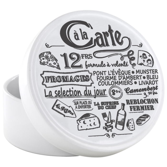 - Caja de cerámica para mantener el queso fresco y servirlo en la mesa.